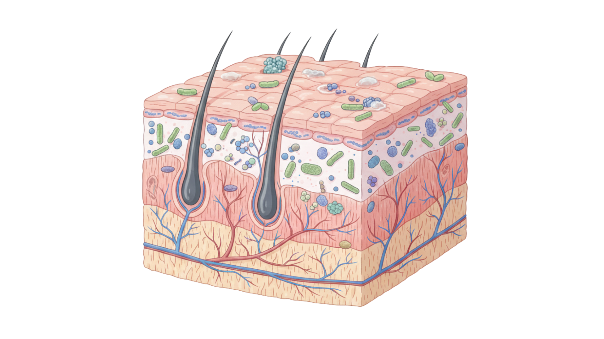 The skin microbiome is made up of trillions of microbes, including bacteria, fungi, viruses, and other microorganisms. These microbes live on your skin’s surface and within its layers, and they’re not just passive residents—they actively protect the skin barrier, regulate the immune system, and support healing and moisture retention.
